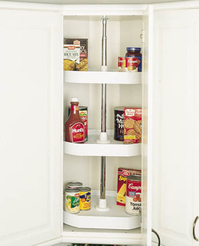 • 22" White Plastic 3 Shelf D-Shape Independent Lazy Susan